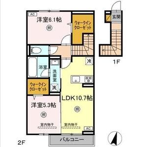 2LDK (洋6.3 x 洋8 x LDK13.5)