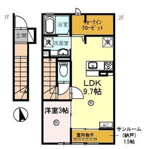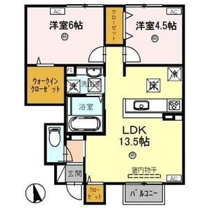 2LDK (洋8 x 洋6 x LDK13.5)