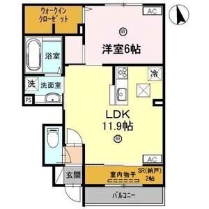 1LDK (洋6 x LDK11.7)