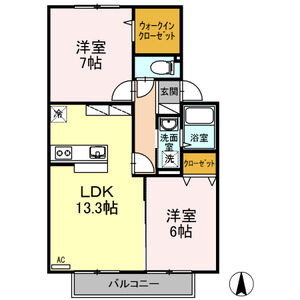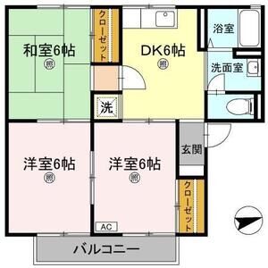 2LDK (洋6 x 洋6 x LDK11.5)