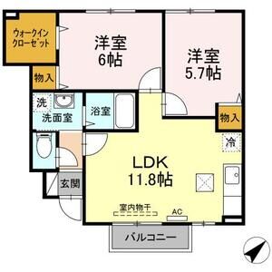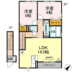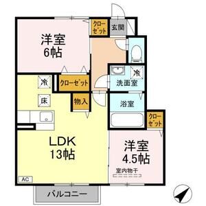 2LDK (洋6 x 洋6 x LDK13)