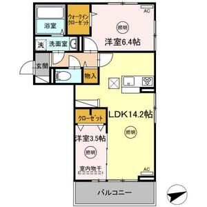 2LDK (洋7 x 洋6 x LDK10.5)