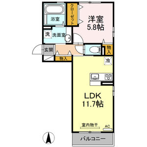 1LDK (洋6 x LDK9.75)