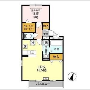 1LDK (LDK13.5 x 洋5)