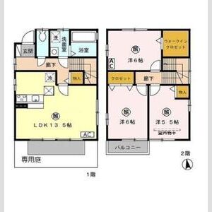 3LDK (洋6 x 洋6 x 洋4.5 x LDK15.5)