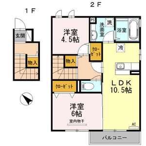 2LDK (洋5.3 x 洋6 x LDK11.5)