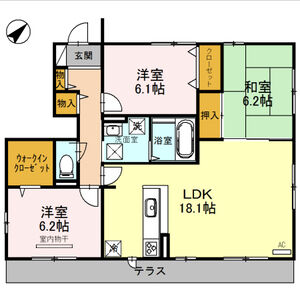2LDK (LDK11.9 x 洋6.5 x 洋6.0)