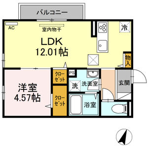 1LDK (LDK10.7 x 洋4.7)