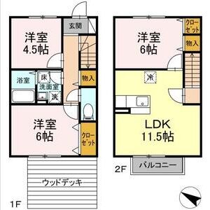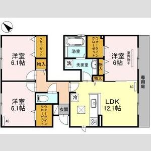 3LDK (洋6.7 x 洋6.1 x 洋5 x LDK14.8)