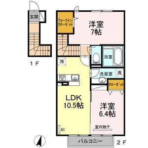 2LDK (LDK10.5 x 洋6.5 x 洋4)
