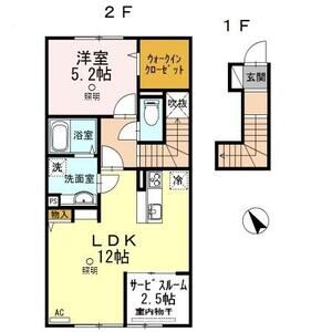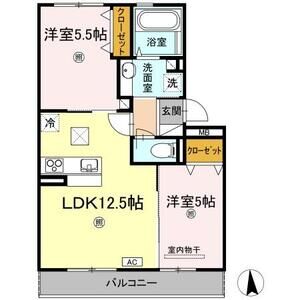 2LDK (洋5.5 x 洋5 x LDK12.5)