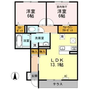 倉敷市西中新田のインターネット無料(D.U-NET/Wi-Fi付)2LDK・オール電化のお部屋です。オートロック・宅配BOX有!1坪の浴室、カウンター付の洗髪洗面化粧台、室内物干等の設備がついています♪