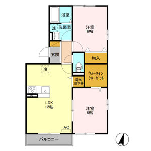 2LDK (LDK16.4 x 洋6 x 洋4.6)