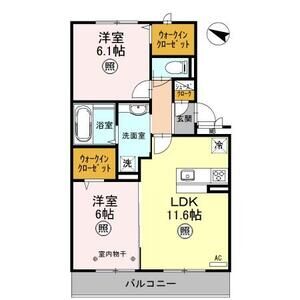 2LDK (LDK14.7 x 洋6.1 x 洋6)