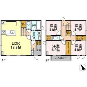 3LDK (LDK14.80 x 洋4.61 x 洋4.61 x 洋7.66)