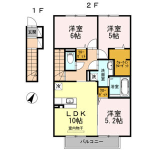 2LDK (LDK10.3 x 洋6.6 x 洋6.1)