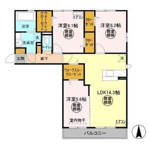 2LDK (LDK14.23 x 洋6.38 x 洋3.54)