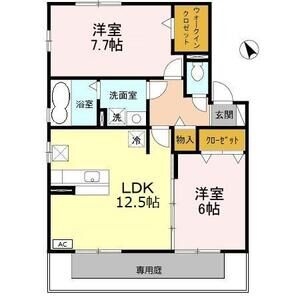2LDK (LDK13.7 x 洋6.1 x 洋4.5)