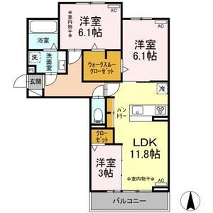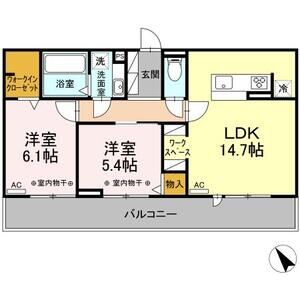 2LDK (LDK15.8 x 洋6.2 x 洋6.2)