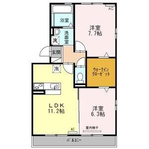 2LDK (LDK11.7 x 洋6.1 x 洋5.4)