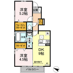 2LDK (LDK12.4 x 洋6.1 x 洋4.6)